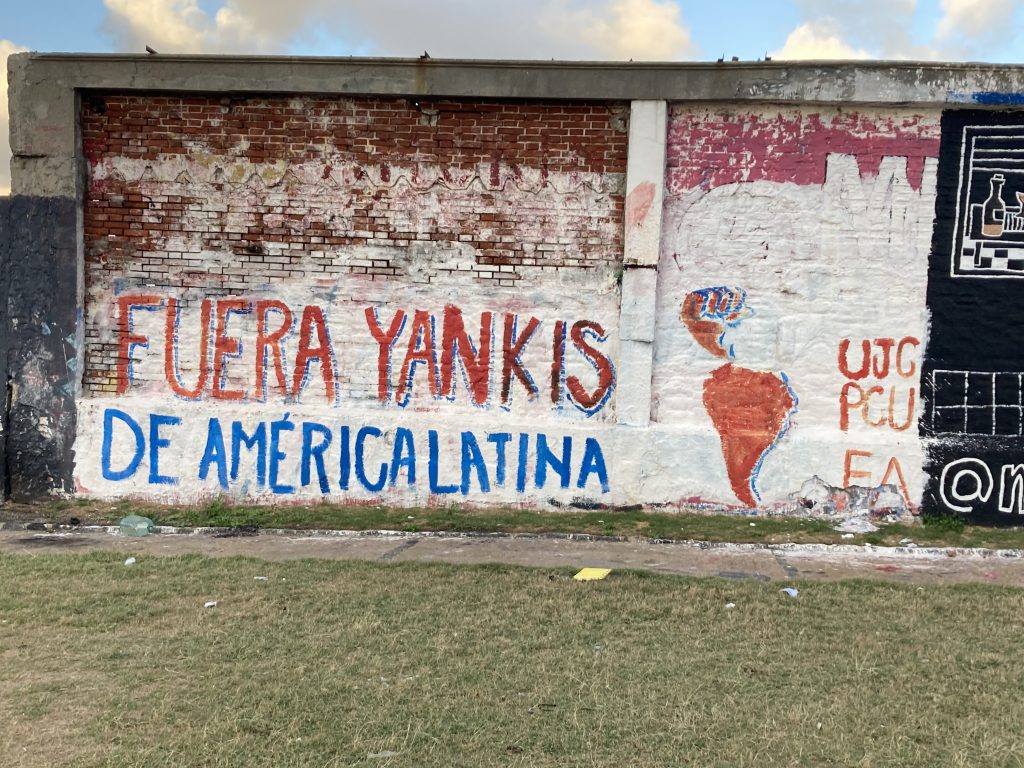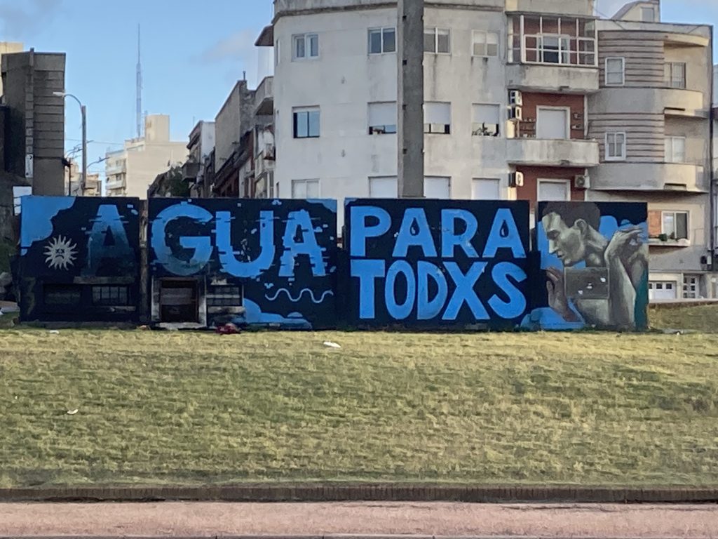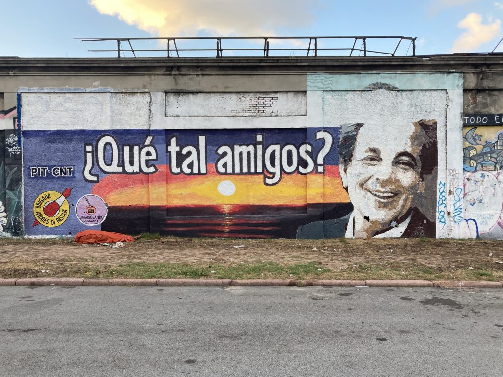 Wir haben eine Appartement an der ca. 20 km langen Rambla mit Blick auf den Rio de la Plata über airBnB gemietet. Wir kannten sie ja schon von unserem letzten Besuch hier in Montevideo im Dezember 2017. Auch damals war ich schon sehr angetan von der (teilweisen) Andersartigkeit und der Vielseitigkeit der Murales, der Wandbilder/Graffitis hier in Montevideo. Manche sind so beeindruckend professionell, dass man nur staunend davor steht, andere sind sehr einfach, aber häufig mit lustigen oder hintergründigen und oft auch politischen Aussagen, dass sie in meinen Augen auch erwähnenswert sind. Ich hänge hier ein paar Beispiele unterschiedlichster Art mit an.